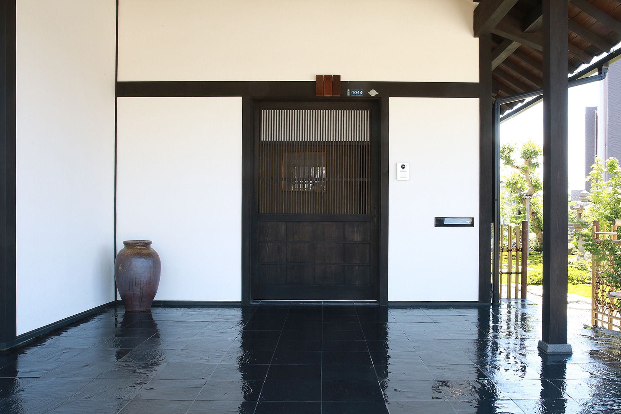 アプローチから見た家の景色、玄関を入った家の景色。